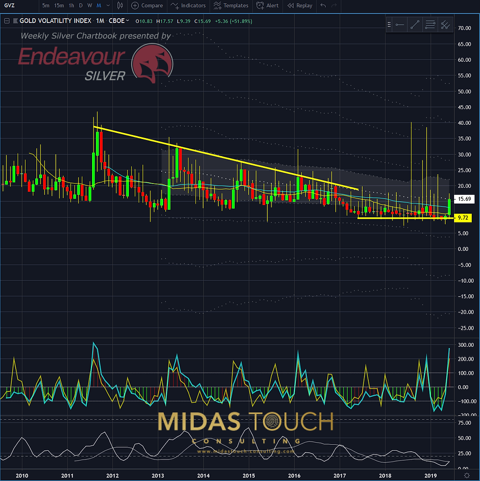 Monthly chart of the gold volatility index 6/21/2019,"something is moving?":