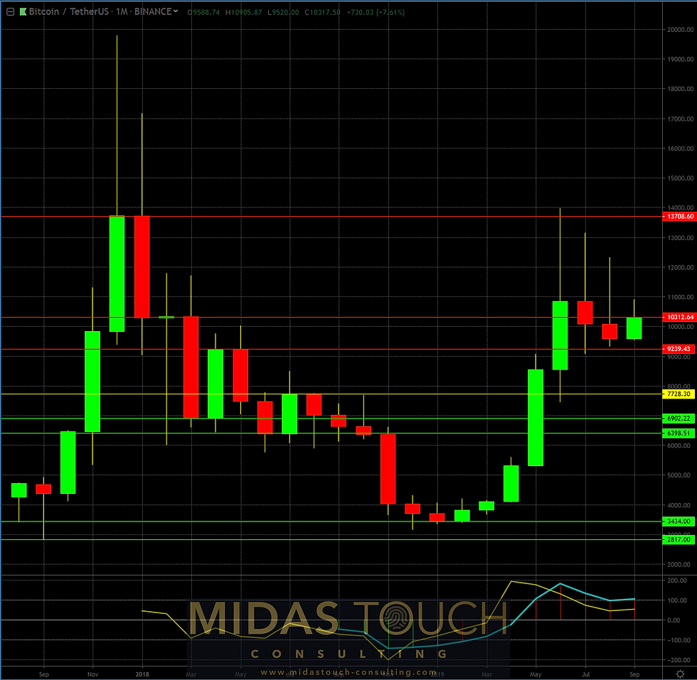 BTC/USDT, monthly chart September 7th 2019. Bitcoin moves-be ready!