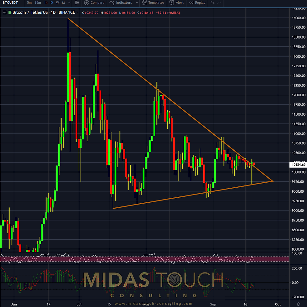 September 19th 2019, BTC/USDT, daily chart, bitcoin-triangle within triangle: