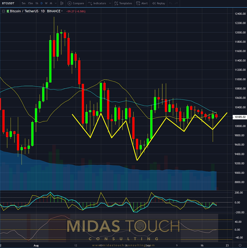 Bitcoin-triangle within triangle, BTC/USDT, daily chart September 19th 2019, “inverse head and shoulder formation”: